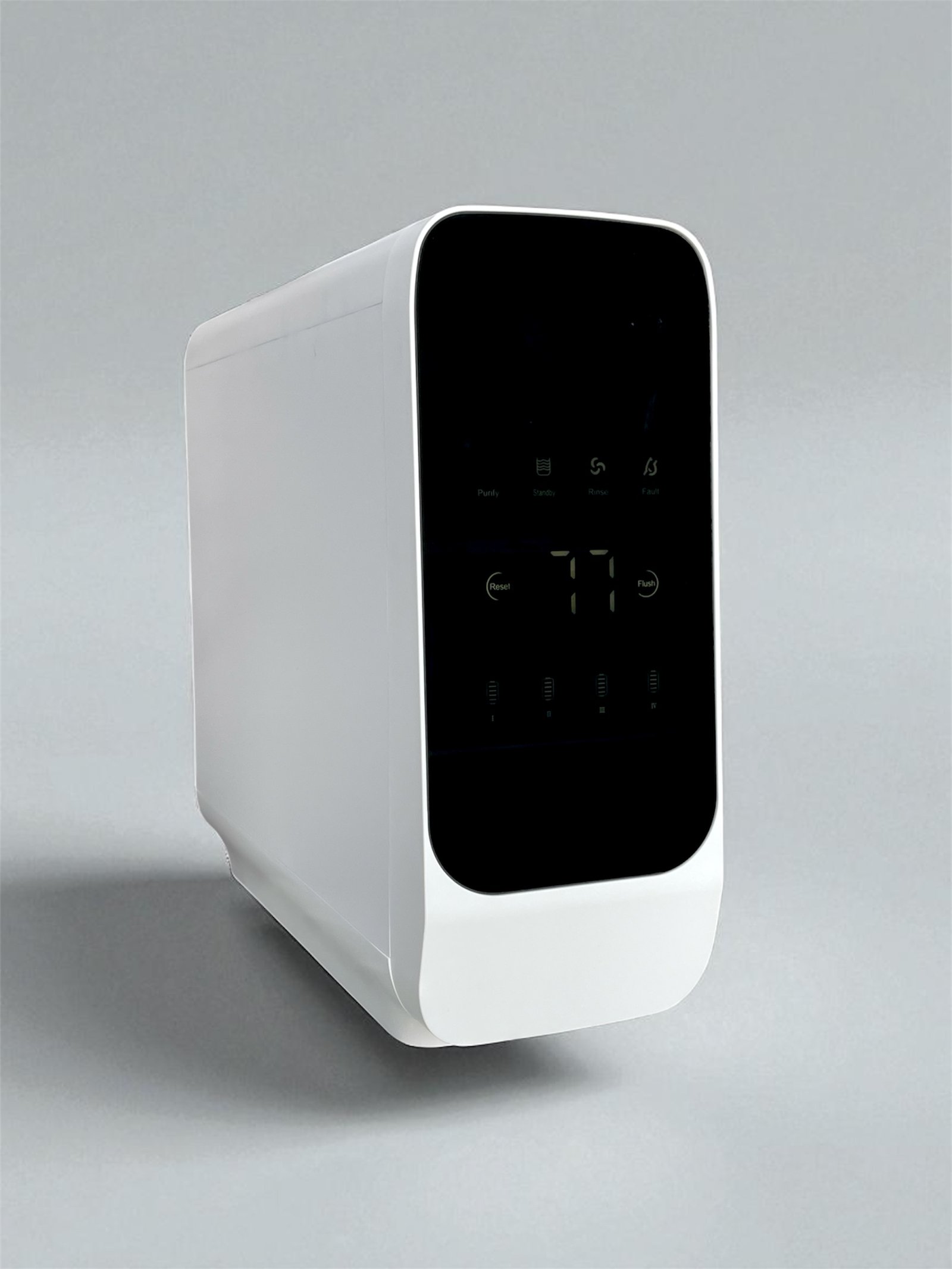 عند تفعيل وضع Purify يبدأ الجهاز بتمرير الماء عبر مراحل الفلترة لإزالة الشوائب، الأملاح، البكتيريا، والروائح.